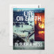 Postcard mit weißer Grafik und Bild von New Orleans nach Hurrikan Katrina auch mit brennendem Waldbrand mit "LIFE ON EARTH IST SO EIN MESS, DAS UNSERE HERZEN MIT SCHMERZ UND STRESS" mit I-BONE LTD ERFÜLLT. Viele leiden unter einer Gier, die so extrem ist, dass sie unseren Planeten auf sehr missbräuchliche Weise missbrauchen. Bald wird unsere irdische Zuhause ein unbelebter Ort sein. Diese Form der Gier ist eine seltene Art von Wahnsinn.