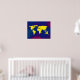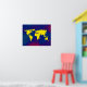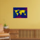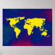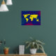 Grafik yellow world map over a bluish background. A cool geography-themed digital illustration for your wall