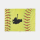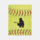Position des iCatch fastpitch Softballspielers silhouettierte Set auf einem gelben Softballhintergrund.