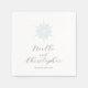 Eisblauer Schneeflocken Winterservietten mit eleganter Kalligraphie. Detailliertes, eisblaues Schneeflockendesign. Passen Sie Ihre Namen und Ihr Hochzeitstermin in dunkler Seekalligraphie und Serifenschrift an. Entworfen, um unsere Ice Blue Snowflake Winter Wedding Collection zu passen.