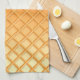 Pink, purple and mint green cream dripping on waffle with multicolored pastel sprinkles.