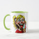 This design captures a wildly expressive little girl with bright blue eyes, messy blonde pigtails, and a mouth stretched in full delight as she holds a swirled strawberry-vanilla ice cream. The image bursts with exaggerated energy and cartoonish charm, set in a playful, high-contrast style that pops against the mug’s clean white background. It evokes pure, contagious happiness—like a sugar rush wrapped in ceramic. A perfect gift to brighten mornings, spark laughs at the office, or add quirky personality to your kitchen shelf, especially in cheerful or colorful spaces all year long.