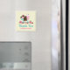 Ein Magnet mit einem süßen Eis-Thema. Text sagt: Danke, dass du so süß bist. Illustriert mit einer Schokoladeneis-Bar, 3-Scoop-Sonnenschirmen mit Kirsche oben und Erdbeerfloat mit getauchten Cremetollops. Kleine Erdbeeren und Kirschen am Boden. Gelbe Hintergrundfarbe.