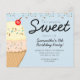 Niedliche Doppelschaufeleisillustrierung mit lustigen pastellfarbenen Sprinklen. Kunstwerk von Valarie Wade. Perfekte Einladung für die Sommerzeit Geburtstagsfeiern von Kindern. Verwenden Sie einfach die einfache Vorlage, um den Text für Ihren nächsten Geburtstagsparty-Bash anzupassen.