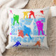 Die Schneeflocken dekorierten Eishockeytexte mit blauen Farbtönen und farbenfrohen Silhouetten-Bildern von Hockeyspielern. Das gemütliche, elegante, einseitig durchsichtige Kissen für jeden. Spielen Sie Hockey, Spaß und seien Sie glücklich!