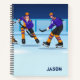 Eishockey Thema personalisiertes Notebook. Name hinzufügen. Wählen Sie den Insider-Stil aus: Uni beherrscht, breit geteilt, gepunktetes Raster, Leerzeichen, etc.