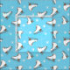 Hellblauer Stoff mit Skaten-Stiefeln in weißer Figur und Schneeflocken