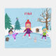 Winter Szene Mädchen's Eis Skaten FLEECE BLANKET mit Tierfreunden beobachten.