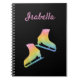 Rainbow Black personalisiert Eis Skaten Notebook für Figur Skater (Mädchen oder Junge) - Eis Skate Design - nettes Eis Skaten Geschenk zu Notizen zu nehmen oder ein Tagebuch zu erstellen. Farben: Regenbogen und Rosa auf schwarzem Hintergrund. Design: Pair der Figur Skate + personalisieren mit dem Namen des Eises Skater. Designed by iceskatingpassion.com. Andere Farben im Shop https://iceskatingpassion.com/stores/