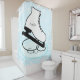 Ein weißer Skate auf blau-weißem Hintergrund mit einem Bereich, den Sie vor der Bestellung mit einem Namen versehen können, oder ein nicht personalisierter Duschvorhang mit Leerzeichen verlasse.