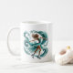 This ceramic coffee mug is shown with a sports ice skater art print.