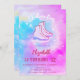 Cute ice skates and snowflakes on a tie dye background. Celebrate your winter birthday with our editable Ice Skating Invitation Template for the birthday girl! . Customize every detail with ease, thanks to fully editable text
