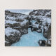 Barnafoss waterfall in Winter - Enjoy this Iceland Jigsaw Puzzle with one of the most beautiful landscapes in the World. Travel while still at home! Taken in Winter from the viewpoint over the Barnafoss waterfall, Iceland Foto taken by Claire from ZigZag On Earth Beautiful landscape jigsaw puzzle of Iceland, great for a Iceland gift!