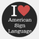 Ich ❤️ American Sign Language für Studenten/Fakult Runder Aufkleber