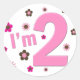 "Ich bin 2" Blume in Rosa und Braun Runder Aufkleber