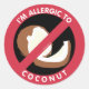 Ich bin allergisch gegen Coconut Food Allergy Symbol Kids Aufkleber. Roter Kreis mit einer Linie durch ihn, die eine offene Kokosnuss überquert. Im Text steht "Ich bin allergisch gegen Kokosnuss" Fruchtallergie. Karo all unsere anderen Allergieprodukte heraus. Kontakt für spezielle Anfragen: www.LilAllergyAdvocates.com