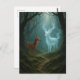 Eine Hirschkuh im Wald, allein und traurig, aber sie wird von ihrem ehemaligen Partner beschützt.