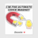 Wortspiel auf dem Sprichwort "Chick Magnet", was einen selbsternannten Damen-Mann bedeutet, aber sich über das Sprichwort lustig machen, indem man die unschuldige wörtliche Verwendung von echten Küken magnetisch gezeichnet und an einem echten Magneten festgehalten hat