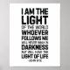 Ich bin das Licht der Welt. Wer mir folgt, wird nie in Finsternis laufen, sondern das Licht des Lebens haben, Johannes 8:12. Bibel Vers Wand Kunst. Schrift Poster, Inspiration Bibel Zitat.