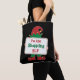 Ich bin die Einkaufsmeile. Eine lustige Urlaubstasche mit einem niedlichen Cartoon-Elf mit einem Schild, das leicht mit Ihrem eigenen Angebot personalisiert werden kann. Ideal für Ihre Shoppingtour im Urlaub oder als ein lustiges Geschenk für Familie und Freunde.