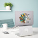 Aquamarine und goldene Sonnenblumen inspirieren den Laptop Aufkleber. Im Text steht: "Sie flüsterten ihr zu, du kannst dem Sturm nicht widerstehen. Sie flüsterte zurück: "Ich bin der Sturm."