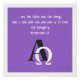 Lila mit schwarzem "A" für Alpha und weißem "Omega". Schrift aus den Offenbarungen 1:8. " Ich bin die Alpha und das Omega, die sind und sind und kommen werden, die Allmächtigen"