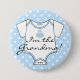 Dieser entzückende hintere Knopf des Abzeichens oder des Buttons erklärt allen Ihren Babyduschengästen, ", das ich die Großmutter bin". Blauer und weißer Polkapunkthintergrund mit einer blaues Baby onsie Pullover-T - Shirtausstattung thingy und eine niedliche blaue Eule. Personifizieren Sie dieses Abzeichen für alle Familienverwandten! Vervollkommnen Sie für die Schwester, Tante, groß - Großmutter, Gotmutter oder MAMA! Machen Sie ein für jeder! Dieses Bild ist in anderen Farben verfügbar! Besichtigen Sie bitte meinen Speicher "die Hungarican Prinzessin" bei www.zazzle.com/hungaricanprincess* und schauen Sie in meiner "oh Baby" Kategorienabteilung. Glückwünsche!