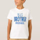 Ich bin der große Bruder Junge personalisierten Baby-T - Shirt in blau. Benutzerdefiniert personalisiert mit Namen niedlich. Dieses Design ist mit einem blauen Jungenbruder, einem lustigen Spaß-Zitat, passenden Geschwistern-T - Shirt, skurrilen Grafiken, einem trendigen modernen Typografie-Schriftart-Design mit einem niedlichen, ankündigenden, familiären T - Shirt-Stil ausgestattet. Ich bin der große Bruder, das Kleinkind, das die Rivalität zwischen den Geschwistern besiegt, die großen Bruder kleinen Shirt