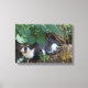 Die unsichtbare Katze. Große graue und weiße Katze versteckt sich unter ein paar Blätter an einem heißen Tag. Katzenfotografie. Katzenliebhaber Geschenk.