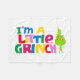 Diese lebendige und humorvolle Grafik zeigt die Selbstbezeichnung: "ICH BIN EIN KLEINER GRINCH!". Der Text ist in massiven, spielerischen, mehrfarbigen Blockbuchstaben gesetzt, die vor dem weißen Hintergrund hervorstechen. Neben dem Text steht eine stilisierte, hellgrüne Cartoon-Darstellung des Grinch mit einem verschmitzten Grinsen und stolz erhobenem Finger. Dieses kühne, farbenfrohe Design ist perfekt für Kleidung, Schreibwaren oder Dekorationen für jeden, der die Feiertage liebt, aber eine freche Ausrede für seine gelegentliche schlechte Laune benötigt.