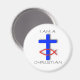 3" runder Kreismagnet mit Kreuz- und Christlichen (ichthus) Fischen, die "I Bin A Christlich" sagen.