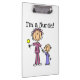 Ein großes Klemmbrett für pädiatrische Krankenschwestern, die Liebe-Strichmännchen, Eigenschaften eine weibliche Strichmännchenkrankenschwester mit einem Kinderpatienten und -lutscher und Text, der mich liest, eine Krankenschwester sind!