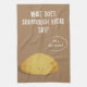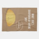 Ein Küchentücher, das einen Brotwitz aufweist. Das Design frage "Was sagt Rohbrot?"Und dann steht im illustrierten Brotsaal unten "Ich bin ein Selbststarter!"Das Farbschema des Küchentüchers ist braun und weiß.