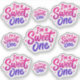 Adorable rosa und lila "I'm a Sweet One" Aufkleber mit 9 lebhaften Designs - perfekt für Geburtstagsfavoriten, Einladungen, Dankeschön-Karten oder Leckerei-Taschen.