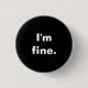 Ein Abzeichen mit dem einfachen Text "ich bin fein" im Weiß auf einem schwarzen Hintergrund. Fühlen Sie sich frei, den Schriftart und die Farben zu ändern.