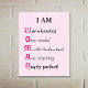 Ein inspirierend Plakat für Sie zu erklären, wie wunderbar Sie sind! Die Briefe der FRAU bilden jeweils den Anfangsbuchstaben eines mächtigen Satzes, um zu beschreiben, was es heißt, eine Frau zu sein. Ich bin warmherzig, aufgeschlossen, mehrtalentiert, Ehrfurcht inspirierend, fast perfekt! In schwarz und rosa Skripttext auf lila rosa Hintergrund