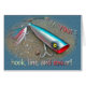 Mein Ehemann macht den Fischen mit die Salzwasserköder (auch genannt Stecker) für uns - sie fangen Fische! Dieses ist ein popper, das entlang der Spitze des Wassers überspringt, das einen plumpsenden Ton macht.