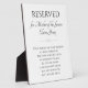 Diese stehende Gedenktafel mit ihrem berührenden Gedicht "Ich bin im Himmel für Ihre Hochzeit" ist eine wunderschöne Art, sich an die Mutter des Bräutigams an Ihrem Hochzeitstag zu erinnern und sie zu würdigen. Legen Sie das auf den Stuhl, in den sie sich gesetzt hätte.