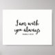 Ich bin mit Ihnen immer Bibel Vers Matthew 28:20 Kunst Poster. Das schöne Zitat ist schwarz. Sie können die Hintergrundfarbe anpassen. Wir können diesen Ausdruck anpassen. Wenn Sie ein anderes Angebot bevorzugen, kontaktieren Sie uns bitte.