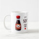 Ein niedliches und spielerisches Design mit einer lächelnden Sojasaucflasche mit dem Wortspiel "I'm Soy Into You". Ideal für eine Tasse, um Ihre Lieblingsgetränke zu genießen. Ideal, um eine süße und sonderbare Nachricht an jemanden zu senden, der etwas Besonderes oder als einzigartiges Geschenk.