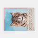 Dieses Design zeigt ein Gemälde des englischen Außenkünstlers Louis Wain (1860-1939), der für sein Kunstwerk mit anthropomorphisierten Katzen und Kätzchen bekannt wurde. Das Gemälde zeigt ein bezauberndes Kätzchen in einer nah-up-Frontalansicht. Sein Fell ist flauschig, mit kräftigen Brauntönen und Grautönen, die in einer weißen, sanft abgerundeten Brust gipfeln. Die Augen des Kätzchens sind groß, leuchtgelb und weit offen, was auf Überraschung, Schock oder Freude hindeutet. Sein Mund ist leicht agape, bildet eine "O"-Form, vielleicht Ausdruck von Staunen oder fröhlichen Erstaunen. Der vereinfachte blaue Hintergrund, gerahmt in einem feinen roten Rahmen, sorgt dafür, dass alle Aufmerksamkeit auf das ausdrucksstarke Gesicht des Kätzchens gezeichnet wird, was die Unmittelbarkeit seines Charmes unterstreicht. Unter dem Kätzchen, in einfacher, fast naiver Handschrift, lautet die Unterschrift: "Ich bin mit einem hübschen Kitten in Liebe gefallen und Kitten war ich selbst." Dies verleiht der Arbeit Charme und Erzählung, was eine süße und spielerische Selbstidentifikation mit dem Kätzchen verstärkt. Diese spielerische Textzeile fügt eine Ebene komedischer Selbstreflexion hinzu, die das Bild aus einer einfachen Tierstudie in eine skurrile Aussage über Identität und Zuneigung verwandelt. Durch die Verschmelzung der Liebe mit dem Akt, ein Kätzchen zu bewundern, schafft Wain eine sanfte, fast therapeutische Botschaft, Freude und Anerkennung in den unschuldigen Qualitäten, die von der Katze verkörpert werden. Das Kätzchen wird damit nicht nur zum Standin für die feline Schönheit, sondern auch für den eigenen Geist des Künstlers. Das Kunstwerk erfasst die Qualitäten, die Wains Kunst so geliebt im spätViktorianischen und edwardischen Großbritannien gemacht haben: Einfachheit, Spaß und eine tiefe Zuneigung für Katzen.