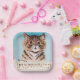 Dieses Design zeigt ein Gemälde des englischen Außenkünstlers Louis Wain (1860-1939), der für sein Kunstwerk mit anthropomorphisierten Katzen und Kätzchen bekannt wurde. Das Gemälde zeigt ein bezauberndes Kätzchen in einer nah-up-Frontalansicht. Sein Fell ist flauschig, mit kräftigen Brauntönen und Grautönen, die in einer weißen, sanft abgerundeten Brust gipfeln. Die Augen des Kätzchens sind groß, leuchtgelb und weit offen, was auf Überraschung, Schock oder Freude hindeutet. Sein Mund ist leicht agape, bildet eine "O"-Form, vielleicht Ausdruck von Staunen oder fröhlichen Erstaunen. Der vereinfachte blaue Hintergrund, gerahmt in einem feinen roten Rahmen, sorgt dafür, dass alle Aufmerksamkeit auf das ausdrucksstarke Gesicht des Kätzchens gezeichnet wird, was die Unmittelbarkeit seines Charmes unterstreicht. Unter dem Kätzchen, in einfacher, fast naiver Handschrift, lautet die Unterschrift: "Ich bin mit einem hübschen Kitten in Liebe gefallen und Kitten war ich selbst." Dies verleiht der Arbeit Charme und Erzählung, was eine süße und spielerische Selbstidentifikation mit dem Kätzchen verstärkt. Diese spielerische Textzeile fügt eine Ebene komedischer Selbstreflexion hinzu, die das Bild aus einer einfachen Tierstudie in eine skurrile Aussage über Identität und Zuneigung verwandelt. Durch die Verschmelzung der Liebe mit dem Akt, ein Kätzchen zu bewundern, schafft Wain eine sanfte, fast therapeutische Botschaft, Freude und Anerkennung in den unschuldigen Qualitäten, die von der Katze verkörpert werden. Das Kätzchen wird damit nicht nur zum Standin für die feline Schönheit, sondern auch für den eigenen Geist des Künstlers. Das Kunstwerk erfasst die Qualitäten, die Wains Kunst so geliebt im spätViktorianischen und edwardischen Großbritannien gemacht haben: Einfachheit, Spaß und eine tiefe Zuneigung für Katzen.