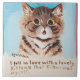 Dieses Design zeigt ein Gemälde des englischen Außenkünstlers Louis Wain (1860-1939), der für sein Kunstwerk mit anthropomorphisierten Katzen und Kätzchen bekannt wurde. Das Gemälde zeigt ein bezauberndes Kätzchen in einer nah-up-Frontalansicht. Sein Fell ist flauschig, mit kräftigen Brauntönen und Grautönen, die in einer weißen, sanft abgerundeten Brust gipfeln. Die Augen des Kätzchens sind groß, leuchtgelb und weit offen, was auf Überraschung, Schock oder Freude hindeutet. Sein Mund ist leicht agape, bildet eine "O"-Form, vielleicht Ausdruck von Staunen oder fröhlichen Erstaunen. Der vereinfachte blaue Hintergrund, gerahmt in einem feinen roten Rahmen, sorgt dafür, dass alle Aufmerksamkeit auf das ausdrucksstarke Gesicht des Kätzchens gezeichnet wird, was die Unmittelbarkeit seines Charmes unterstreicht. Unter dem Kätzchen, in einfacher, fast naiver Handschrift, lautet die Unterschrift: "Ich bin mit einem hübschen Kitten in Liebe gefallen und Kitten war ich selbst." Dies verleiht der Arbeit Charme und Erzählung, was eine süße und spielerische Selbstidentifikation mit dem Kätzchen verstärkt. Diese spielerische Textzeile fügt eine Ebene komedischer Selbstreflexion hinzu, die das Bild aus einer einfachen Tierstudie in eine skurrile Aussage über Identität und Zuneigung verwandelt. Durch die Verschmelzung der Liebe mit dem Akt, ein Kätzchen zu bewundern, schafft Wain eine sanfte, fast therapeutische Botschaft, Freude und Anerkennung in den unschuldigen Qualitäten, die von der Katze verkörpert werden. Das Kätzchen wird damit nicht nur zum Standin für die feline Schönheit, sondern auch für den eigenen Geist des Künstlers. Das Kunstwerk erfasst die Qualitäten, die Wains Kunst so geliebt im spätViktorianischen und edwardischen Großbritannien gemacht haben: Einfachheit, Spaß und eine tiefe Zuneigung für Katzen.