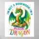 Lebhaftes, farbenfrohes Design mit einem Stapel Bücher, einer Rose und einem Drachen. Der farbenfrohe Text lautet: "Ich bin kein Bücherwurm. Ich bin ein Buchdrache". Dieses Design ist auf einer Vielzahl von Produkten erhältlich.