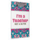 "I'm a Teacher, Not A Sniper" Zwischenablage mit einer Nachricht für Schullehrer, die in ihren Klassenzimmern keine Waffen gewollt haben. Blumenmosaik in Blues und Pink