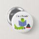 Ein cooler Knopf für junge Leser, ein Bücherwurm, der mit einem Bücherstapel neben ihm beschäftigt ist. Passen Sie Ihre Wünsche an.