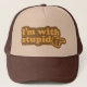 Das fundamentale Neuheits-T - Shirt-Sprichwort erhält einen aktualisierten Blick… mit einem kleinen beunruhigten Flair, also schaut es, wie Sie mit dummem für eine lange Zeit gewesen sind. Nichts sagt, dass Sie intelligenter sind, als die Person, die nahe bei Ihnen stehend ist, "ich sind mit dummem" Hut mögen. Es gibt sehr wenig, das sie tun können, um den Ansturm von Ihrem zu verneinen sich rühmen der Geistesüberlegenheit… retten für das Bewegen auf die andere Seite von Ihnen, selbstverständlich. Oder den genauen Hut mit dem Finger kaufend, der auf Sie zeigt.