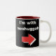 Diese geistreiche jüdische Spaß-Tasse kennzeichnet einen Pfeil und der Text "ich bin mit meshuggah." Dieses ist eine jüdische Schräge auf ich sind mit dummen Einzelteilen, die Sie sehen.