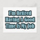 Niedliches, lustiges Sprichwort Zitat Textdesign in blau und schwarz, dass das humorvolle Ruhestand Sprichwort, ich bin müde, haben eine gute Zeit ist mein Job.