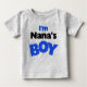 Ich bin Nana's Boy-T - Shirt, lange Ärmel-T-Shirts, Körperanzüge einschließlich Bio Körperanzüge, und Fußballkarosseriebüge, Hüte, Liebhaber, dunkle T - Shirt, glänzende T - Shirt und andere Kleidung mit einem hellblauen und schwarzen Text-Design, der lautet: Ich bin Nanas Junge!